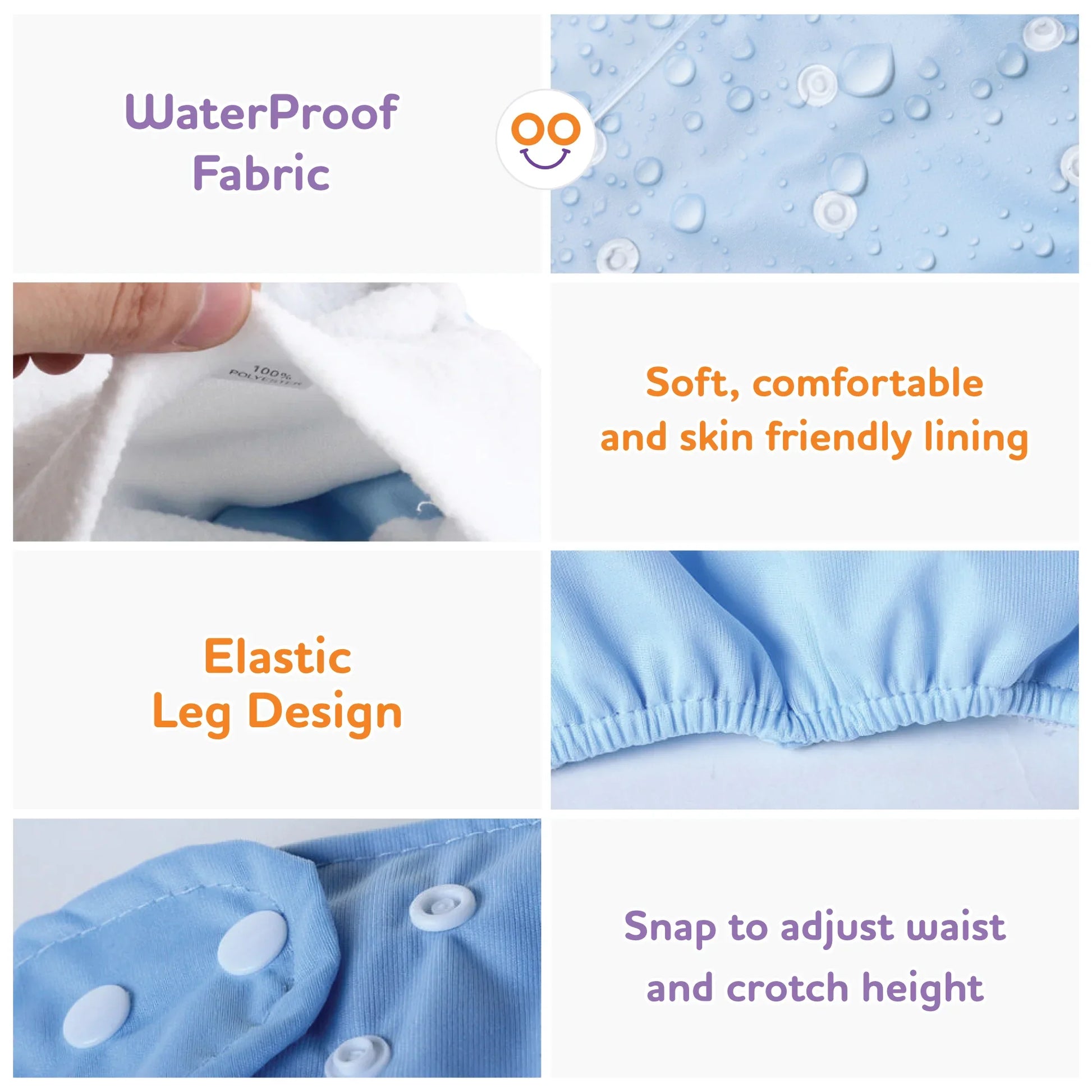 Reinforced stitching, sturdy snap buttons, and a resilient waterproof shell mean these diapers won’t wear out quickly. They can take repeated washing without losing shape or leak protection. - ✅ Efficient Design:
